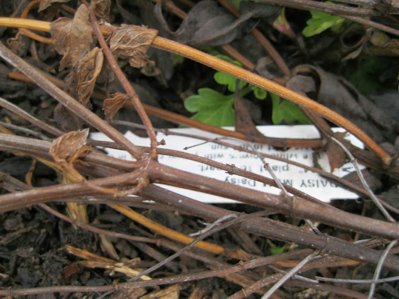 It was comforting to see the green of chrysanthemum plants peeking out from the stems meant to protect them. So far they have done their job and our hopes for the return of the chrysanthemums in the spring are still alive and well.
